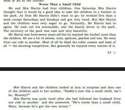 Напишите краткий пересказ на английском,вот текст. Пересказ то лица Миссис Харрисс или одного из ребёнка. Срочно!!!!