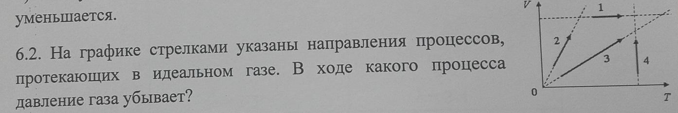 На графике стрелками указаны направления процессов, протекающих видеальном газе. В ходе какого процесса давление газа убывает?