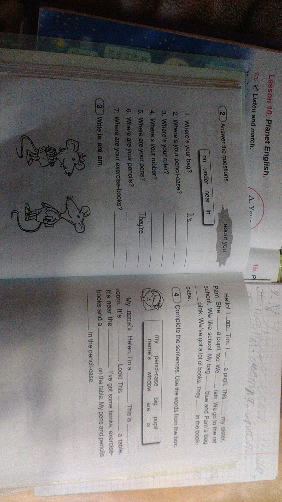 I am a pupil. this is my sister pam. she is a pupil too.we are rats,. my bag is blue and pam's bag is pink. they are in the book case.