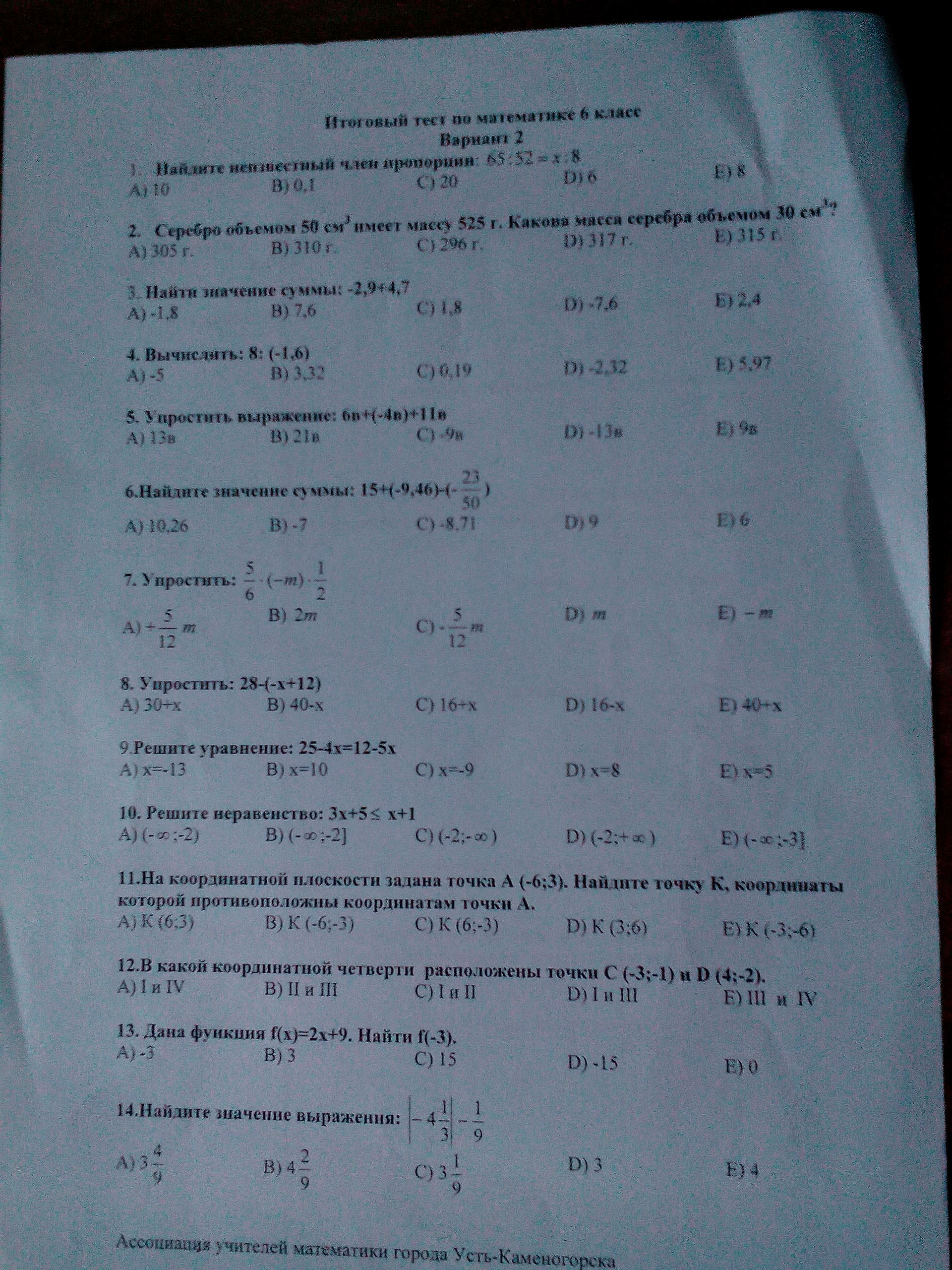 Прошу, помогите решить весь тест по математике, заранее спасибо. Ответы надо сдать учителю до завтра!