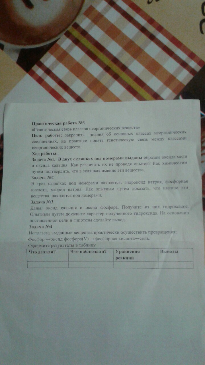 Смотри ,задача номер 1= тут все просто по тому же самому цвету CuO-это черный порошок,а CaO-белого цвета.