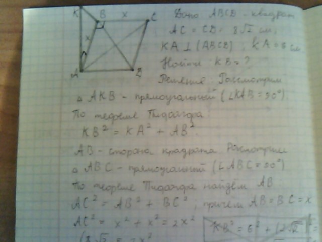 КВ в квадрате = КА в квадрате + АВ в квадрате
