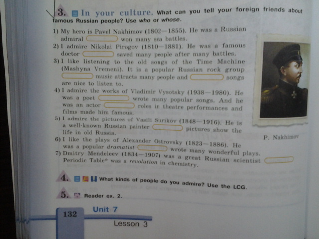 1) Мой герой это Павел Нахимов. Он был Российским адмиралом, который выиграл множество морских сражений