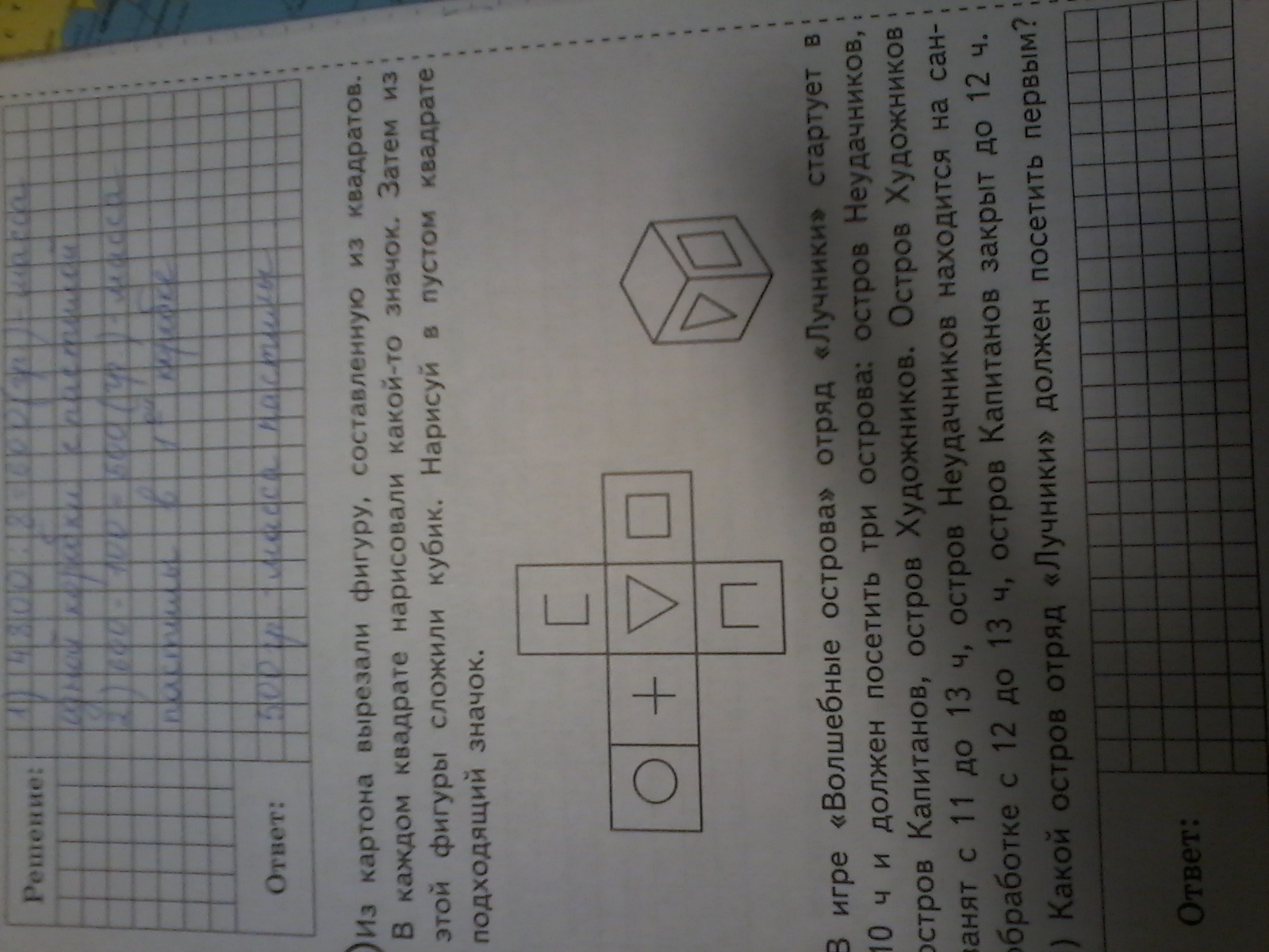 Из картона вырезали фигуру составленную из квадратов в каждом квадрате нарисовали какой-то значок затем из этой фигуры сложили кубик нарисуй в пустом квадрате подходящий значок