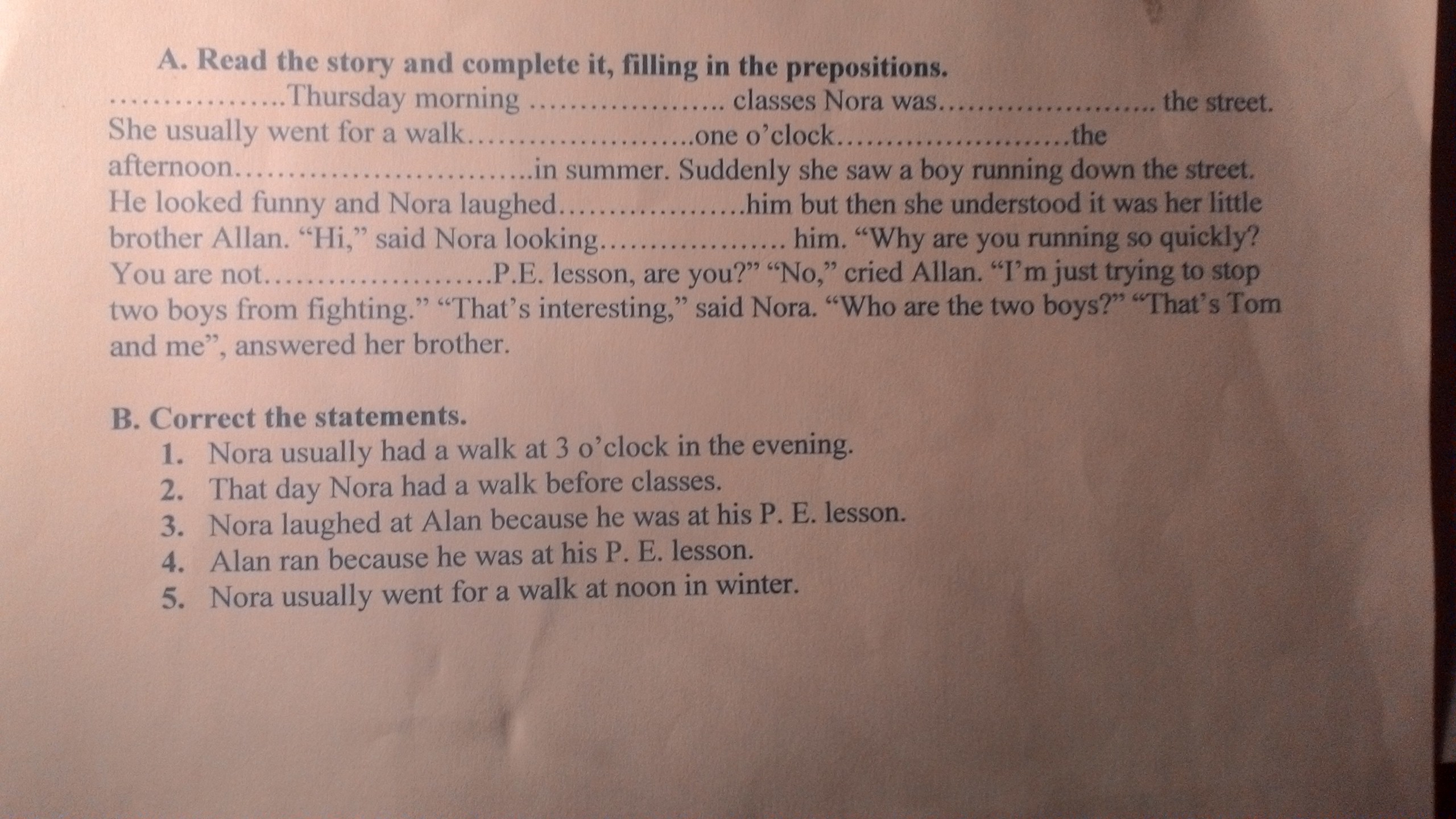 3)Nora was laughing