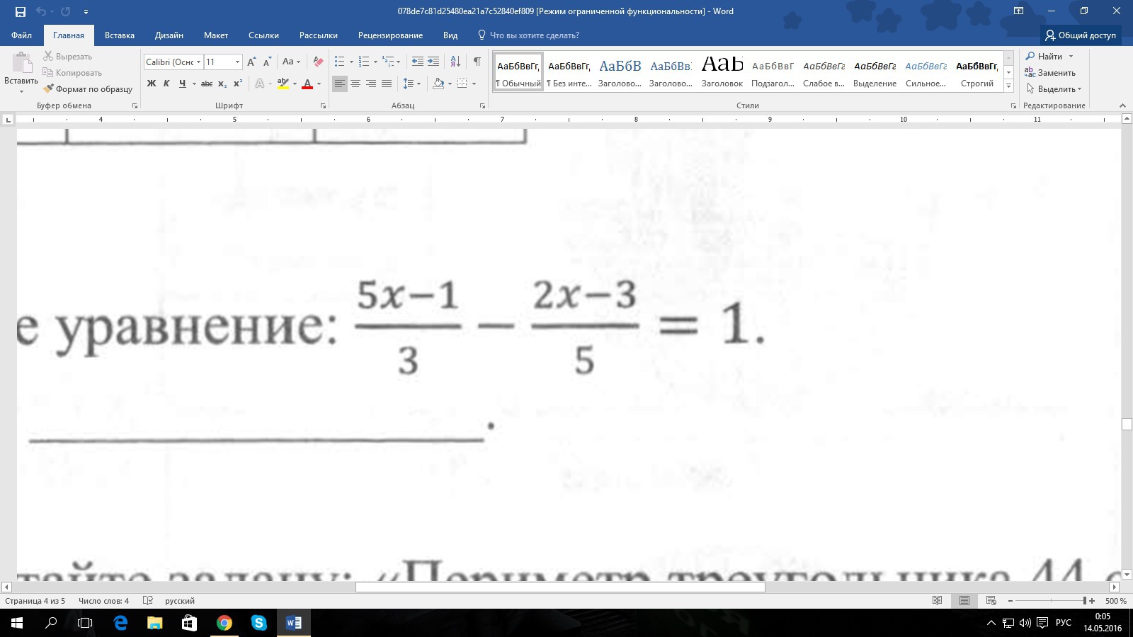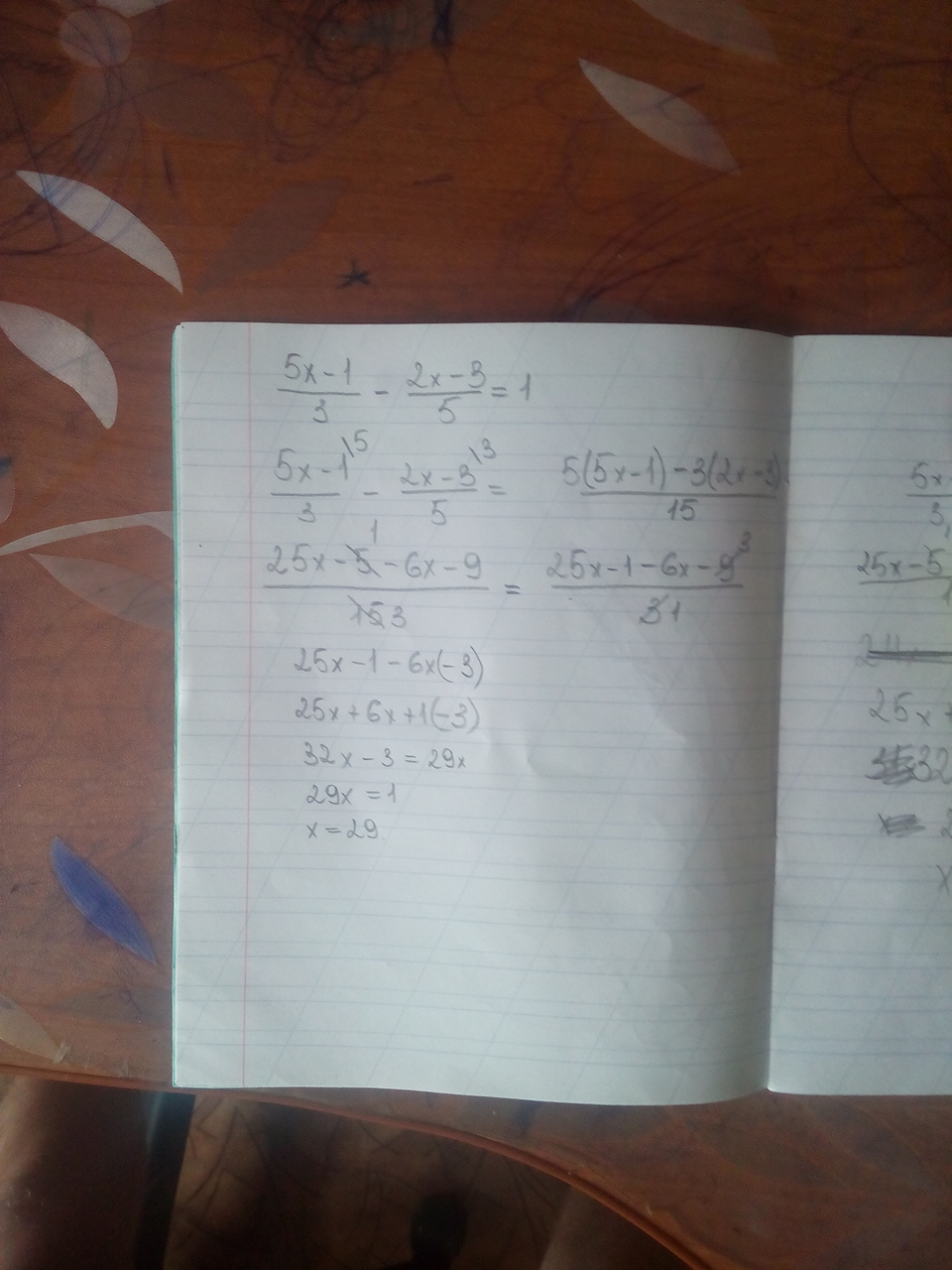 Затем привели к Наименьшему общему кратному - 15. Потом поделили на знаменатели ( 15 на 3 или на 5 ) и решили уравнение.
