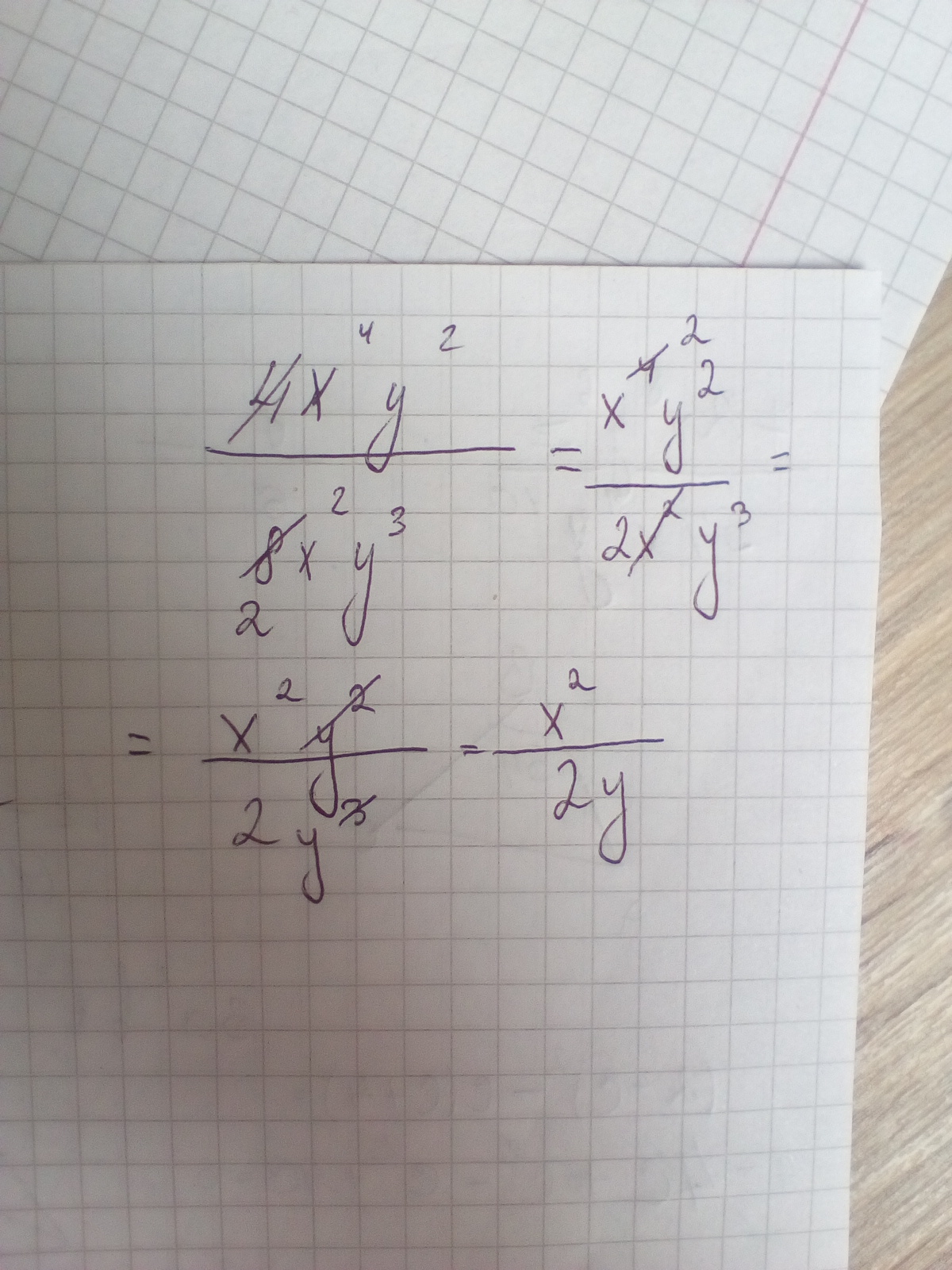 сократите дробь 4x^4 y^2/8x^2 y^3