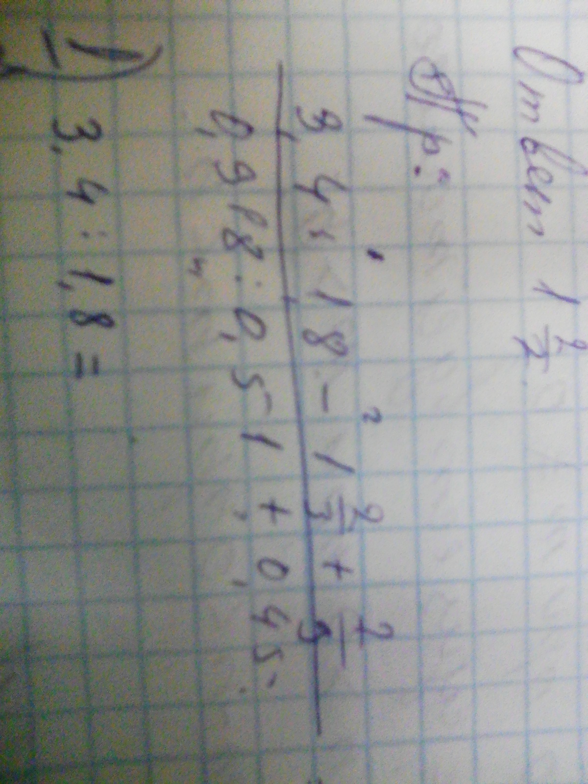 1) 3,4:1,8= 34/10 : 18/10= 34/10 * 10/18= 17/9= 1 8/9