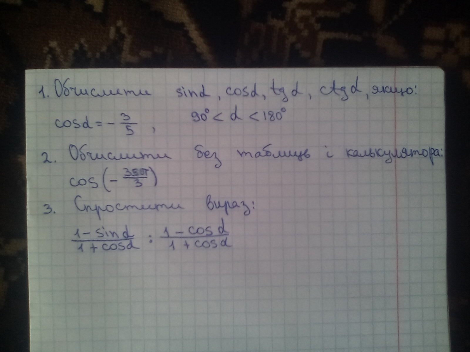 1. Вычислить sinα, cosα, tgα, ctgα, если: ...