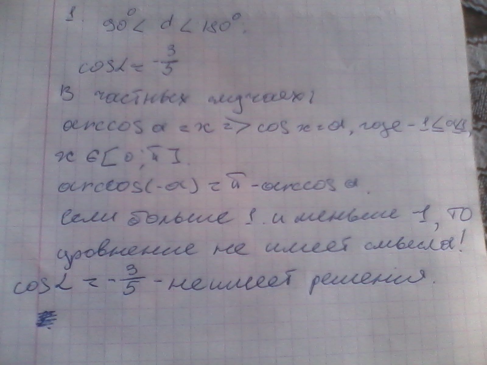 Если больше 1 и меньше -1, то уровнение не имеет смысла к первому заданию!