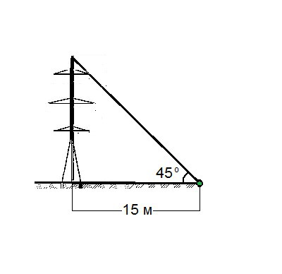 на рівнинній місцевості з точки яка знаходиться на землі на вдстані 15 м від основи електричної опори видно цю опору під кутом 45 до горизонту. яка висота опори