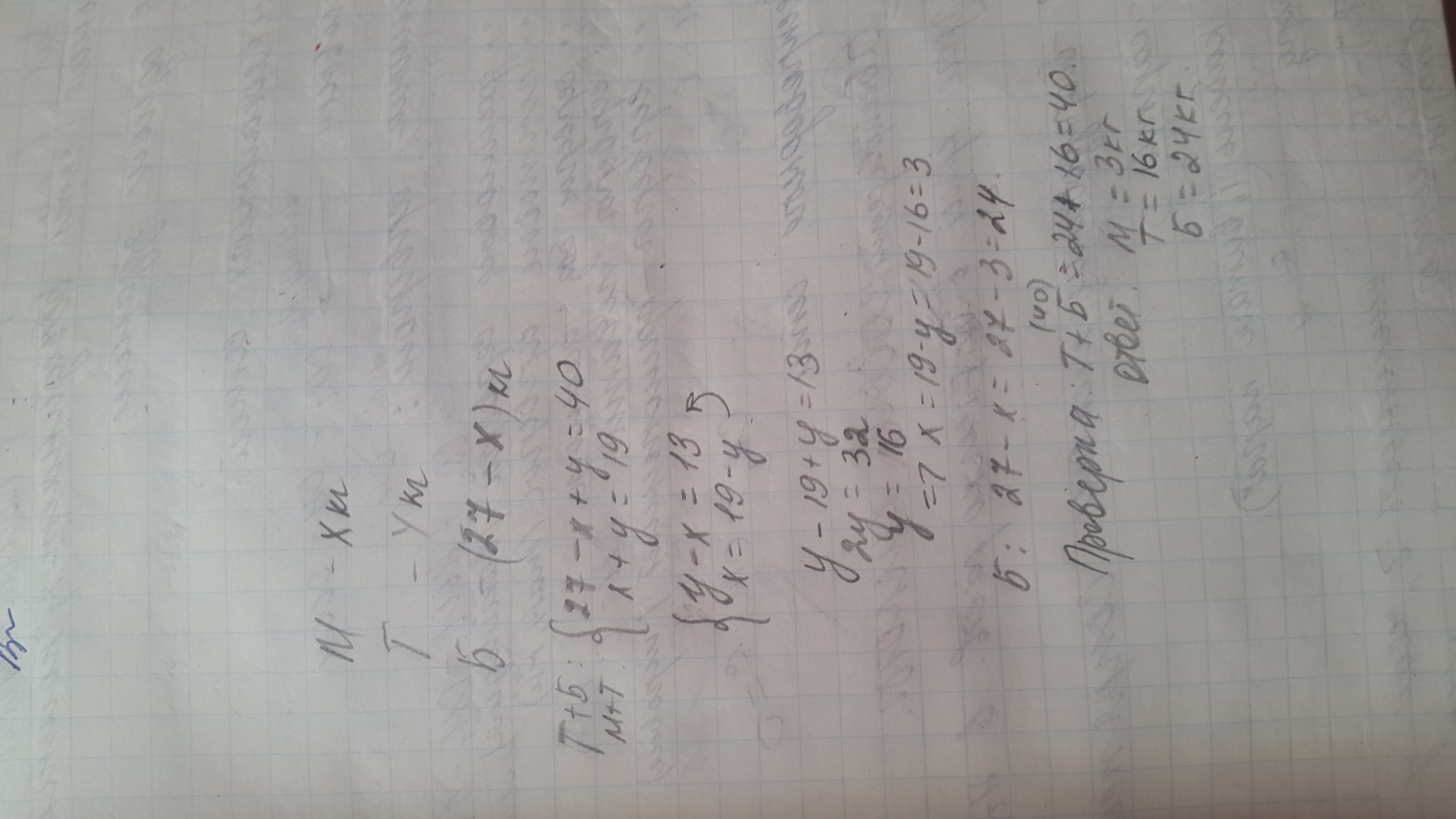 Дети взвешивали своих домашних питомцев парами.Мурзик и Тузик вместе весят 19 кг,Мурзик и Бобик вместе весят 27 кг,а Тузик и Бобик-40 кг.Кто сколько весит?