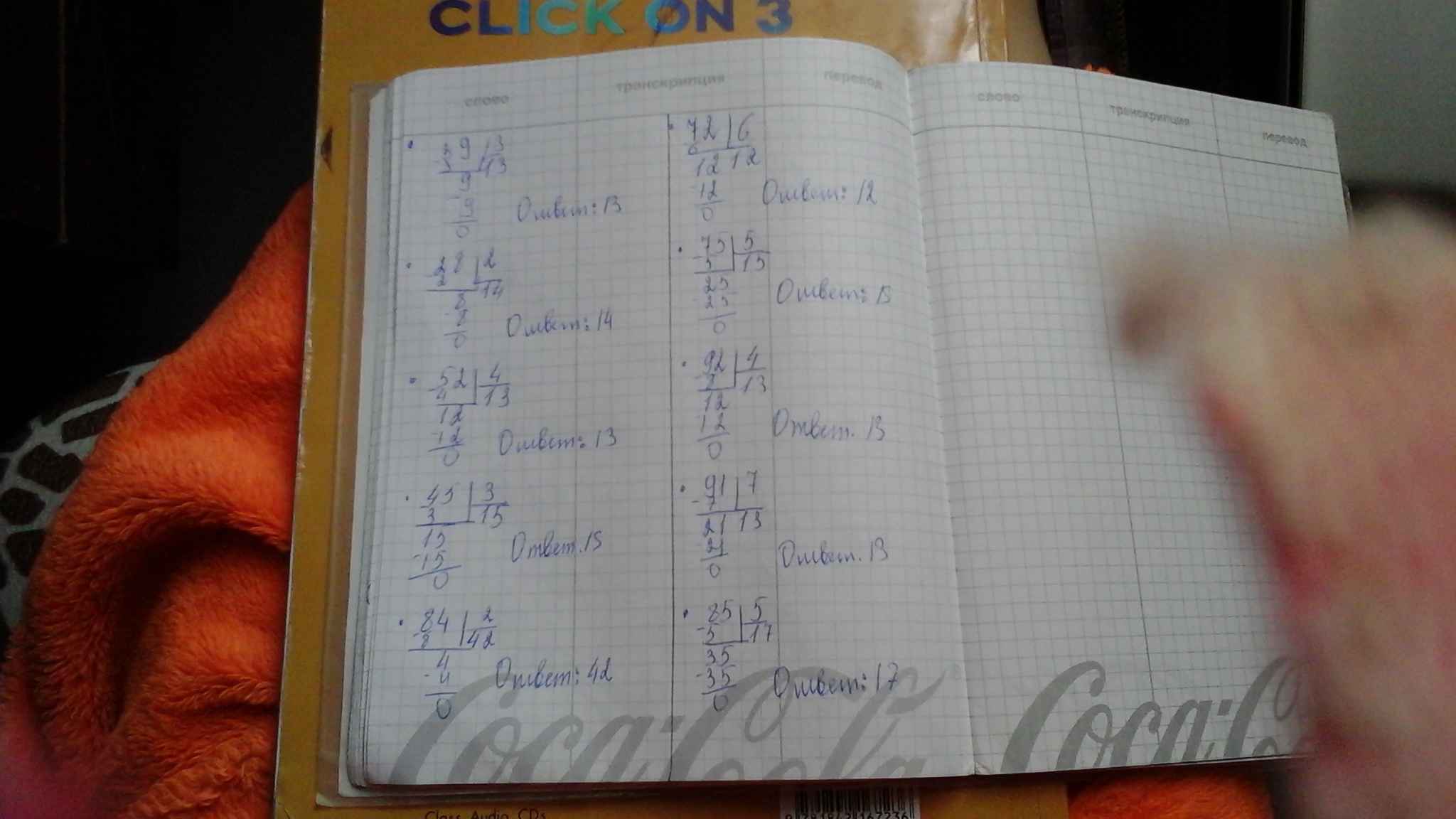 39÷3 28÷2 52÷4 45÷3 84÷2 72÷6 75÷5 92÷4 91÷7 85÷5 выполни действия используя алгоритм деления двухзначного числа на однодзначное