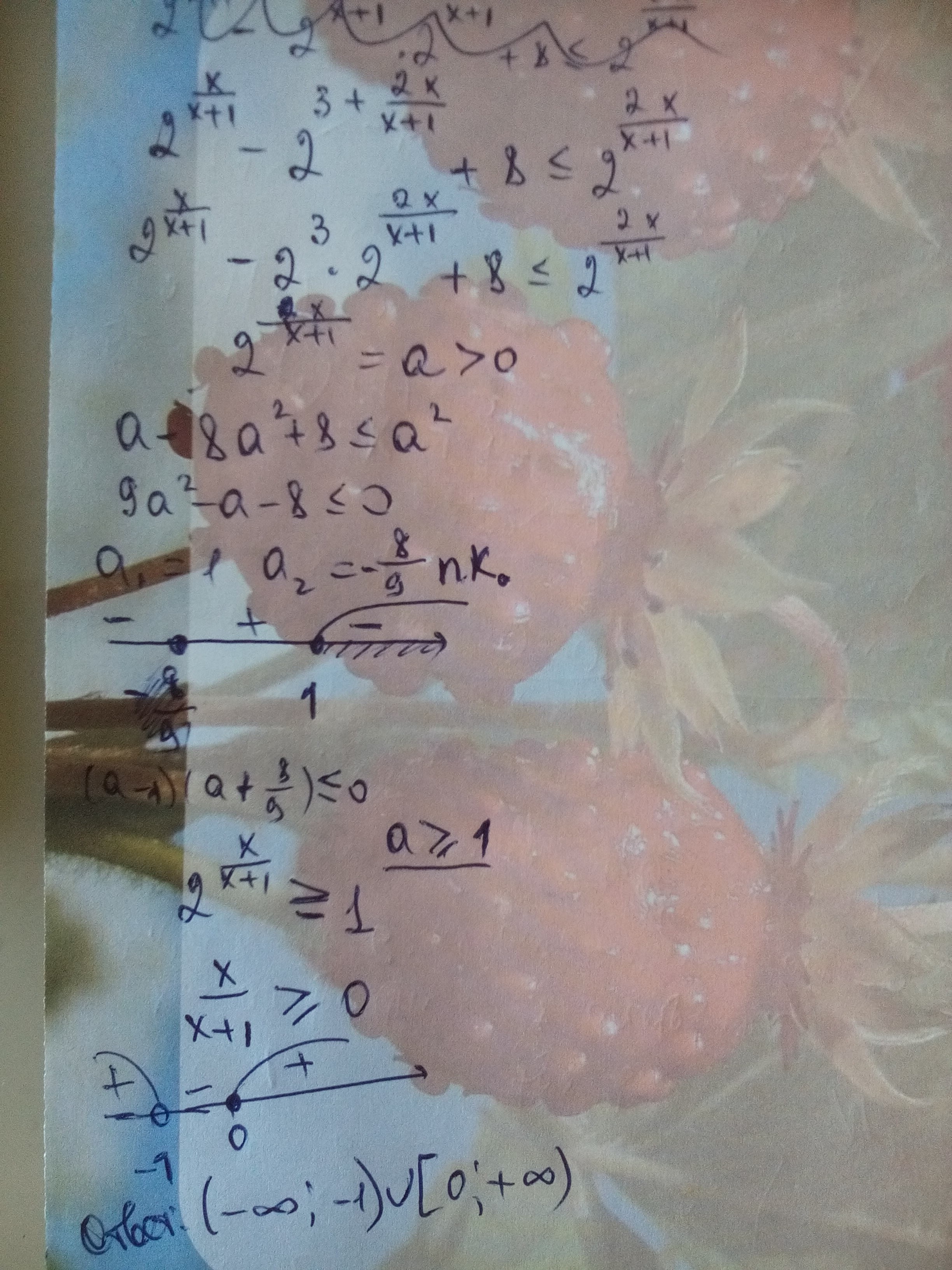 неравенство ведь не строгое. Если тупо подставить x=0, то получаем 2^0-2^3+2^3 ≥2^0,
