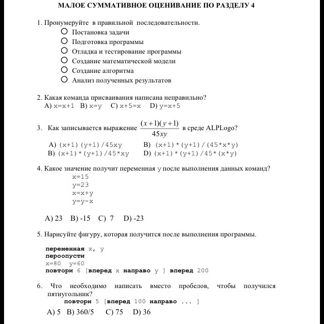1. Постановка задачи, создание мат. модели, создание алгоритма, отладка и тестирование, подготовка программы, анализ результатов