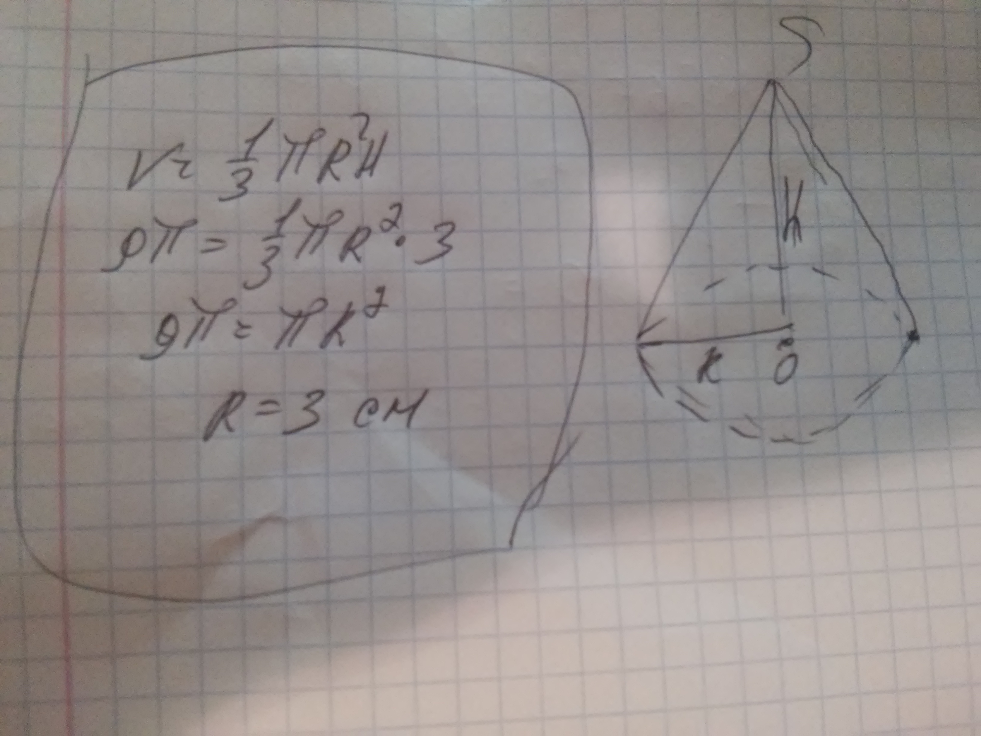 первая формула это обьем конуса, просто выражаем то что нам небходимо найти.