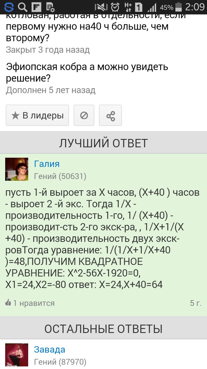 два экскаватора,работая совместно могут вырыть котлован за 48 часов если первый проработает 40 ч а второй 30 ч то будет выполнено 75% всей работы за какое время может вырыть котлован второй экскаватор работая отдельно ?