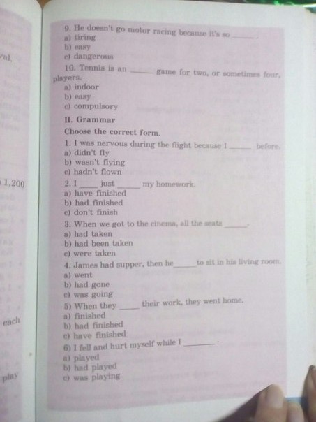 8. In Greek plays it was easy for the same actors to play many parts because they wore different costumes Ответы:1-B,2-B,3-A,4-C,5-А,6-B,A(под вопросом точно незнаю),7-C,8-C.