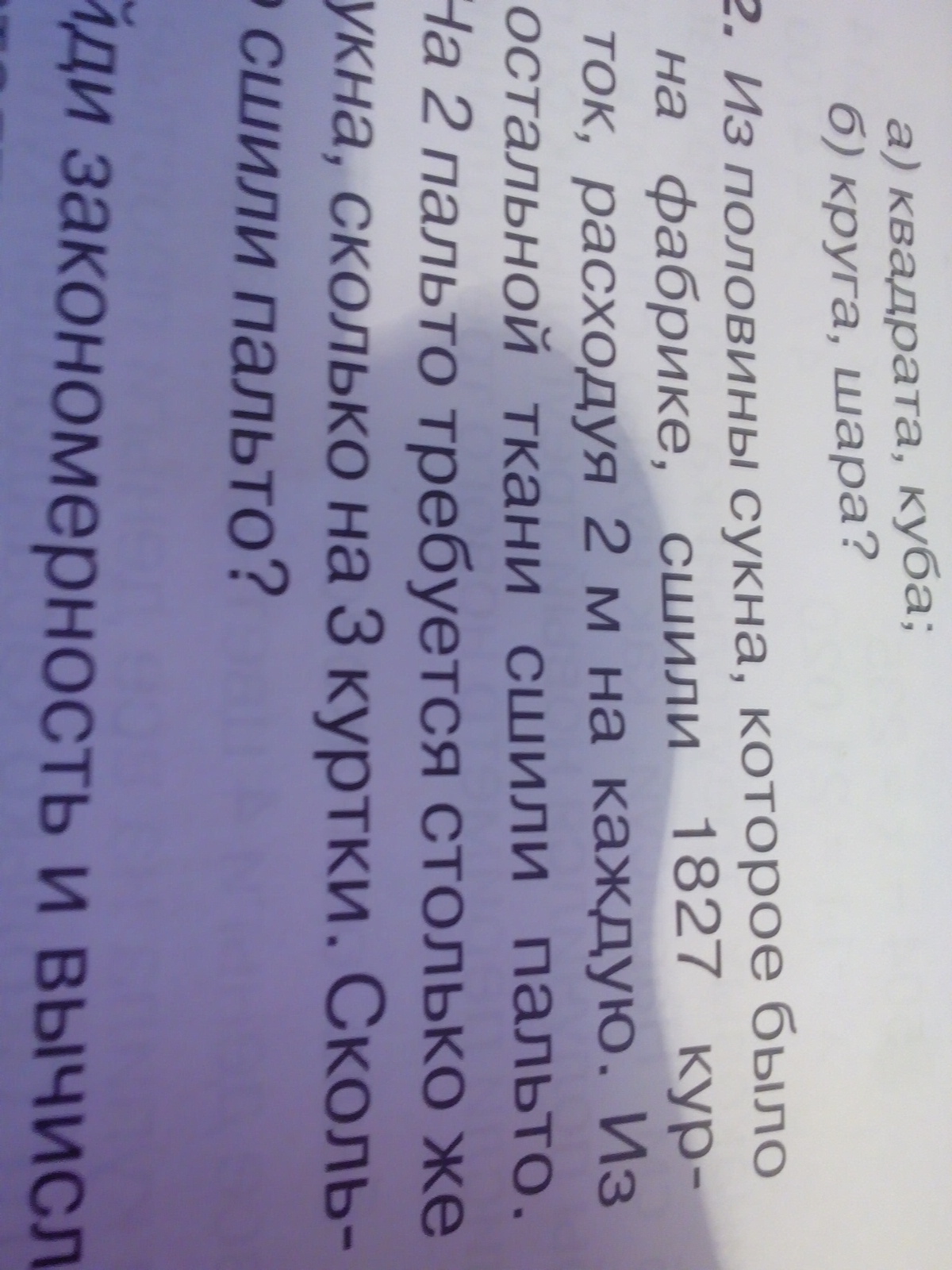 2) (2*3)/2 = 3м сукна расходуется на одно пальто;