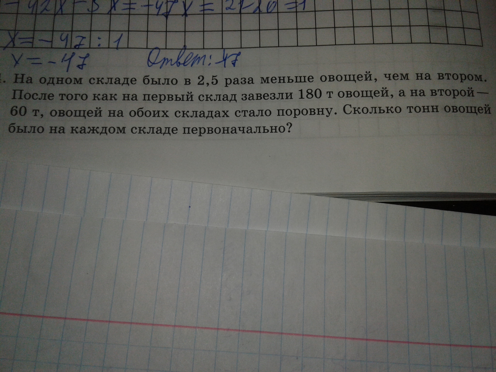(2,5х + 60) - тонн овощей после ввоза 60 тонн на второй склад