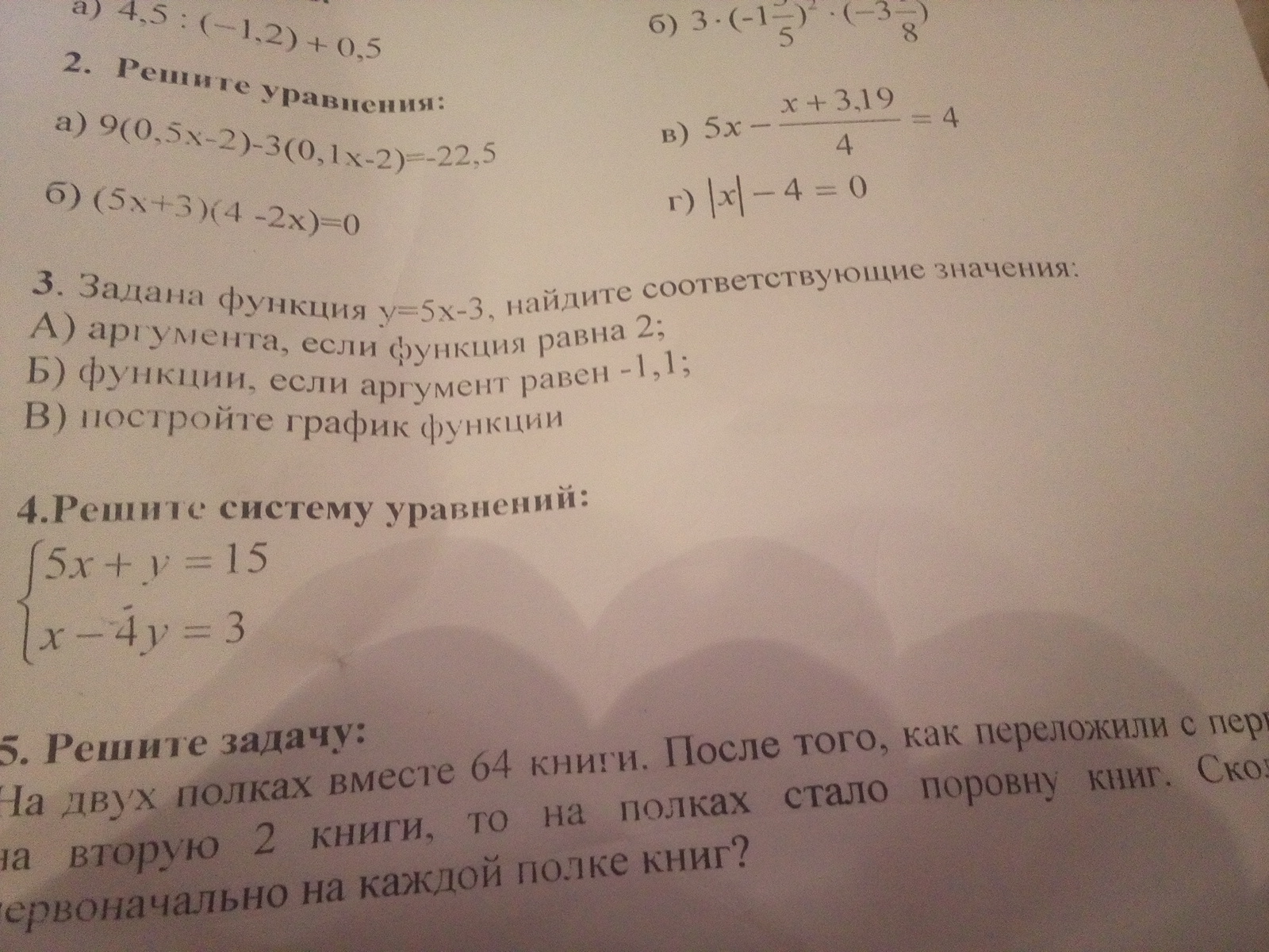 в) Обычная линейная функция. Берешь два значение для х, подставляешь, и на координатной прямой по горизонту Х, по вертикали У смотришь точка 1 (х,у) и вторую так же, и потом соединяешь