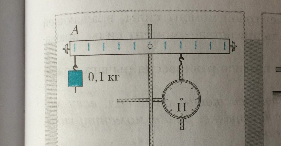 К рычагу в точке А подвешен груз массой 0,1 кг. Каково показание динамометра,с помощью которого уравновесили рычаг?