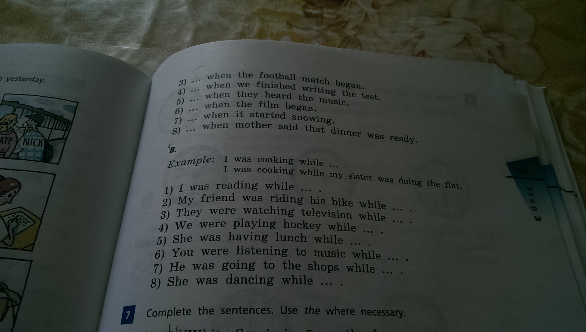 1. I was reading while my sister was going shopping