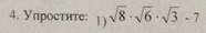 корень из 8 на корень из 6 на корень из 3 -7= корень из 144 -7 =12-7=5