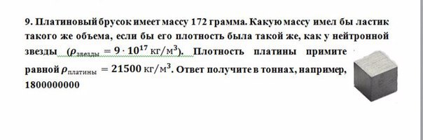 m1=pзв*V=9*10^17*8*10^-6=72*10^11 кг=72*10^8 т=7200000000 т