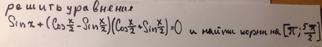 Sinx+(cosx/2-sinx/2)(cosx/2+sinx/2)=0 (можно заметить, что то все злое выражение в скобках собереться по формуле разность квадратов, получим:)