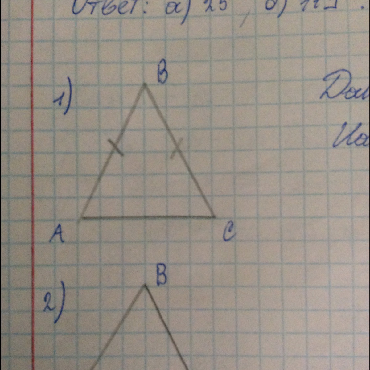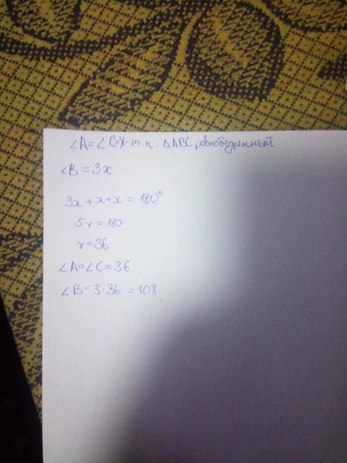 т.к. треугольник ABC равнобедренный то углы при основании равны