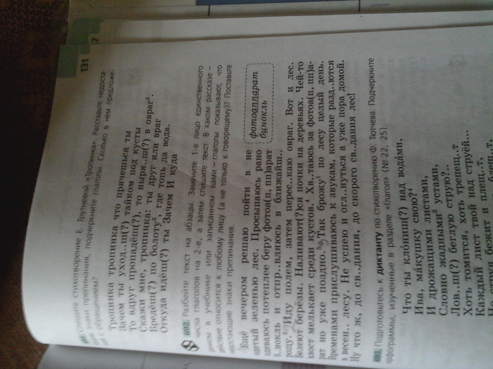Просыпаюсь (сказуемое, двумя чертами) рано (обстоятельство, _._._), одеваюсь (сказуемое, двумя чертами) потеплее (обстоятельство, _._._), беру (сказуемое, двумя чертами) фотоаппарат (дополнение, _ _ _),бинокль (дополнение, _ _ _) и отправляюсь (сказуемое, двумя чертами) в (дополнение, _ _ _) ближайшую (определение, волнистая линия) рощу (дополнение, _ _ _).