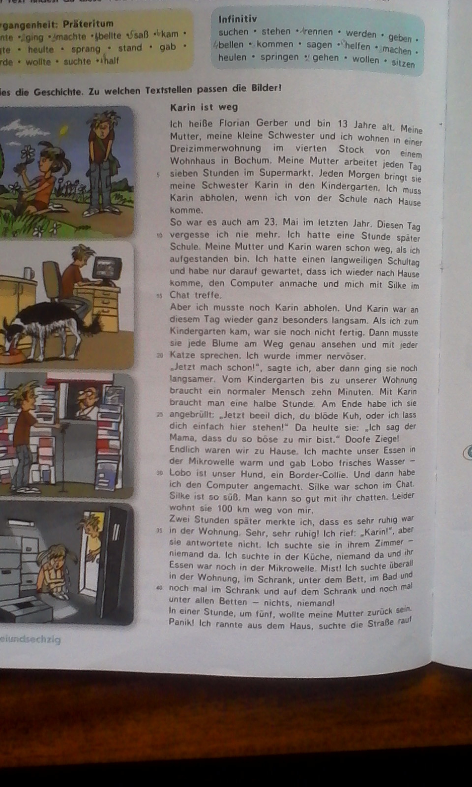 Меня зовут Флориан Гербер и мне 13 лет. Моя мама, младшая сестра и я живем в трехкомнатной квартире на четвертом этаже в Бохуме. Моя мама работает каждый день по семь в часов в супермаркете. Каждый день она водит мою младшую сестру в детский сад. Я должен забирать ее, когда иду домой со школы.