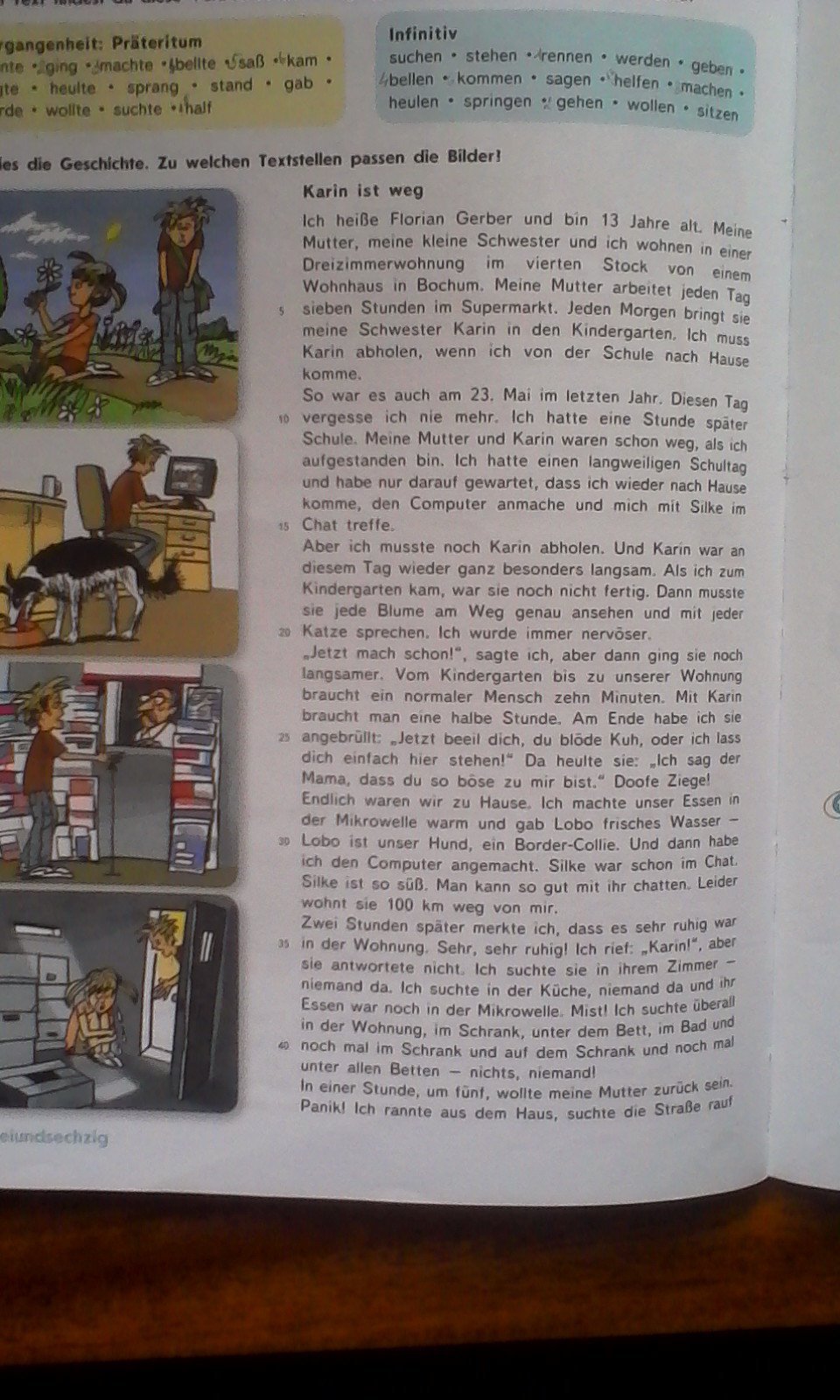 Меня зовут Флориан Гербер и мне 13 лет. Моя мама, младшая сестра и я живем в трехкомнатной квартире на третьем этаже в Бохуме. Моя мама работает каждый день по семь в часов в супермаркете. Каждый день она водит мою младшую сестру в детский сад. Я должен забирать ее, когда иду домой со школы.