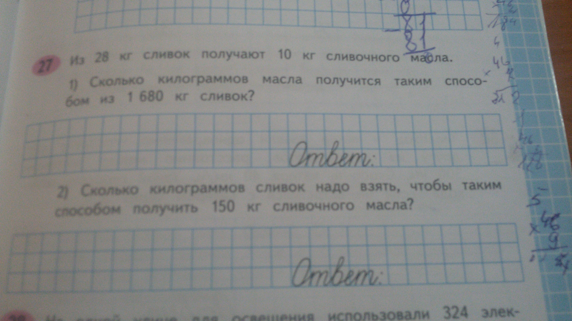 2. 1680:2,8 = 600 кг. масла получится из 1680 кг сливок