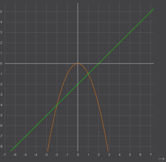 Сначала делишь уравнение на две функции y=-x^2 и y=x-2. С таблицей все просто, берешь сначала одно уравнение и подставляешь в него значения x, записываешь значение y. Например для функции y=-x^2: