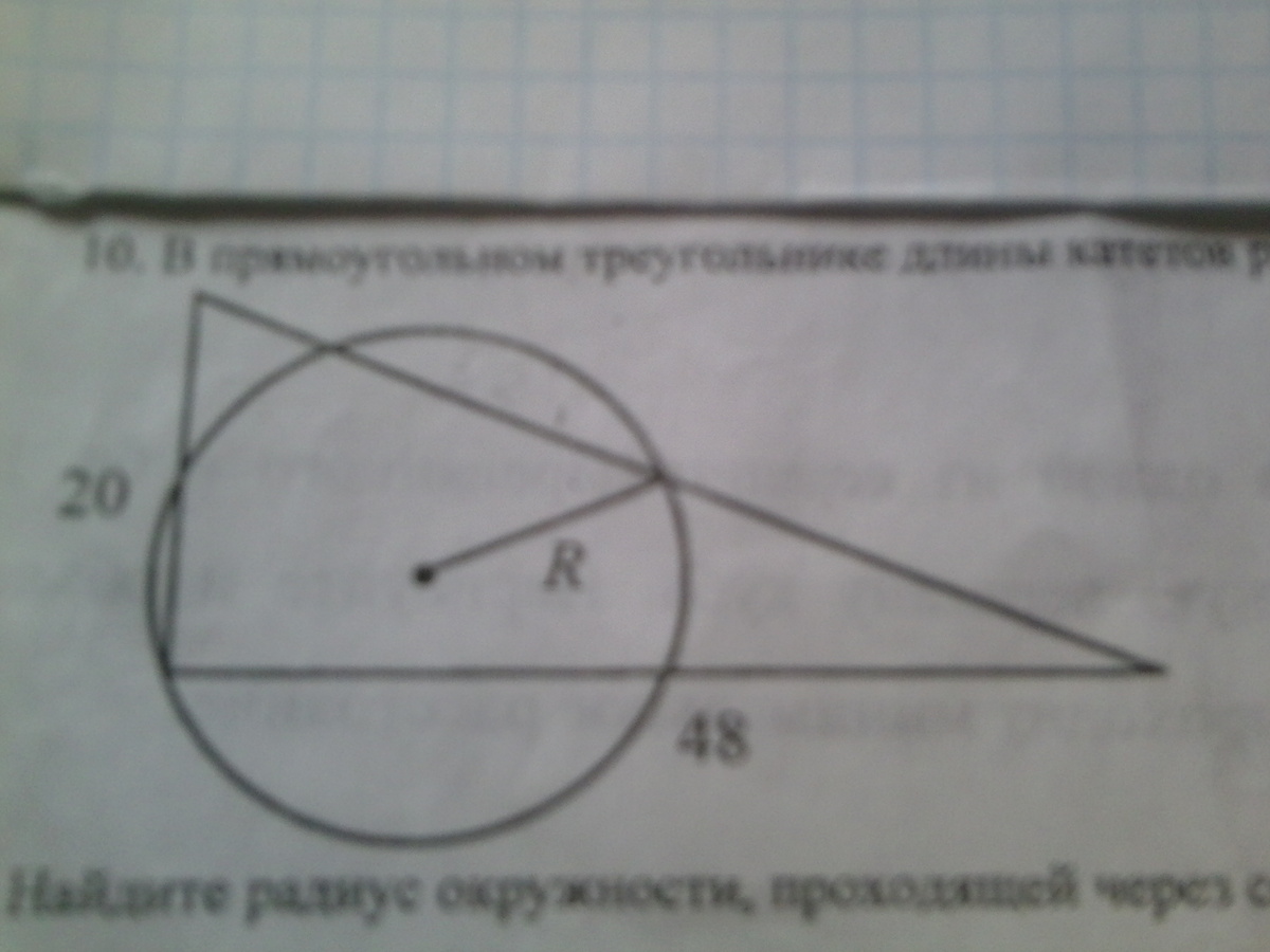 В прямоугольном треугольнике длины катетовравны 20 и48(смотри вложение).