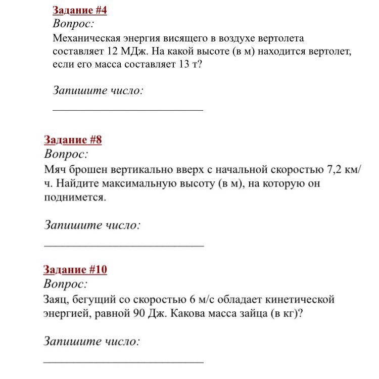 10) Ek=mv^2 m=2Ek/v^2= 5kg
