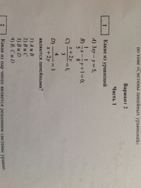 Ну вот смотри, слово линейное говорит само за себя, то есть уравнение должно быть записано в одну линию, поэтому линейными уравнениями не могут являться уравнения под буквами с и д, а буквы а и в подходят