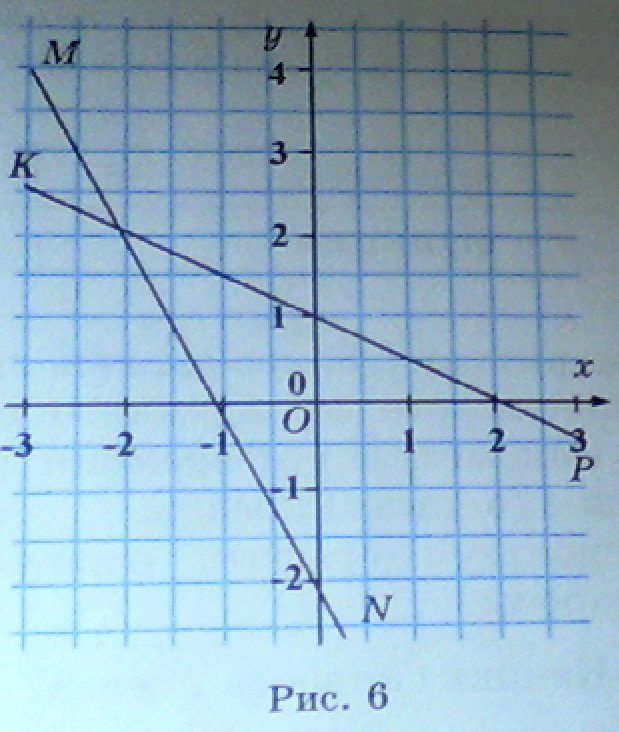 Найдём уравнения прямых. Прямая КР проходит через две точки:(0,1) и (2,0).