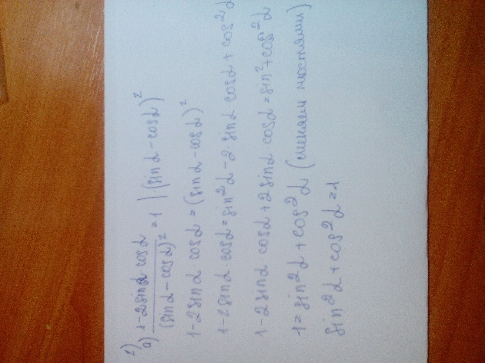 а)1-2sin a * cos a | (sin a-cos a)²=1
