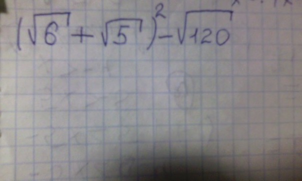 (√6 +√5)² - √120 = 6+ 2√30 +5 - √120 = 6 + √2²×30 +5 - √120 = 6+ √120 + - √120 = 11