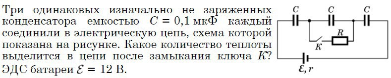 Q=E*E*c/6 - c*E^2/12=c*E^2/12=0,1*10^-6*12*12/12=1,2 мкДж