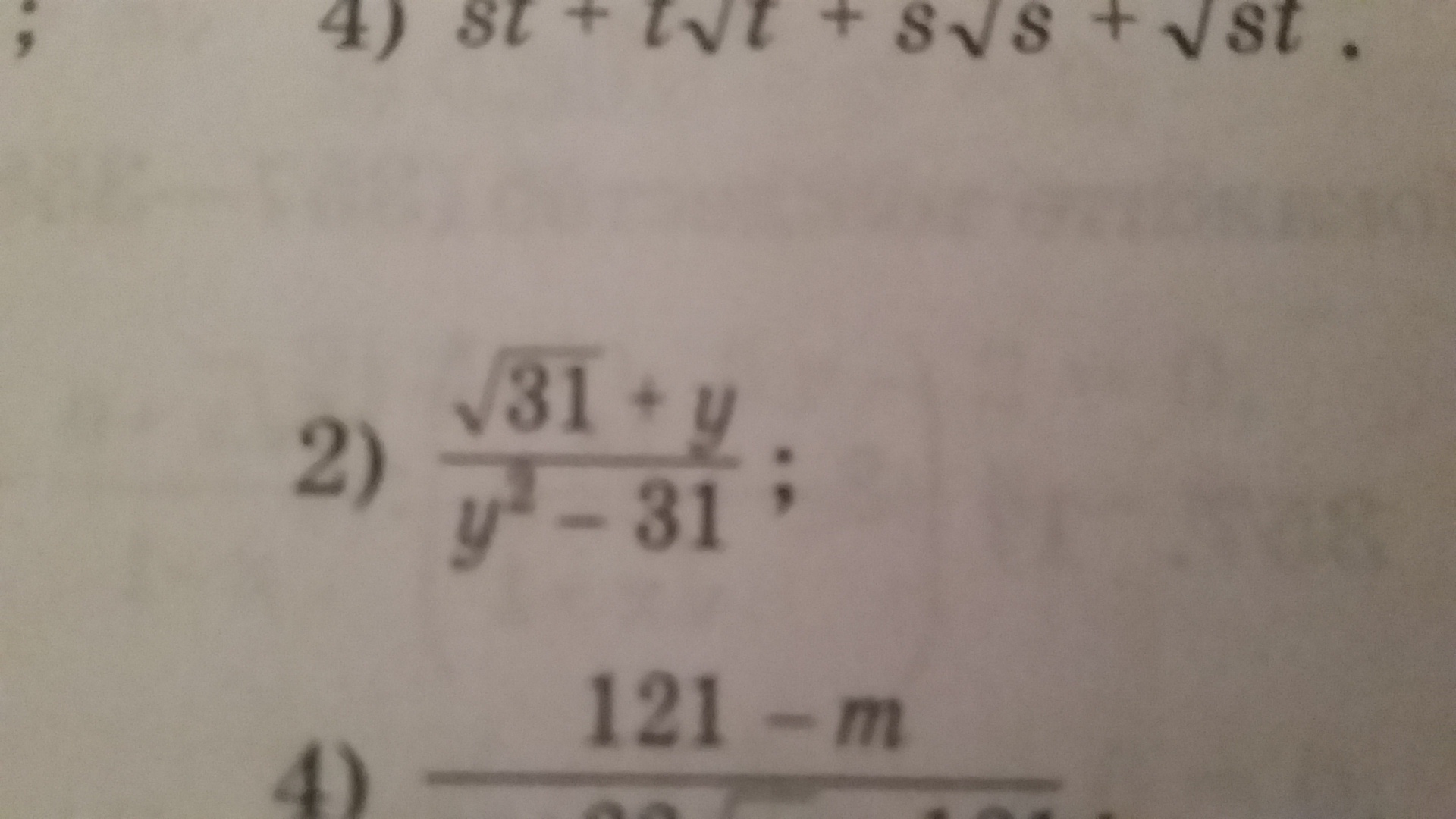 √31+у/у^2-31=y+√31/(y-√31)(y+√31)=1/y-√31