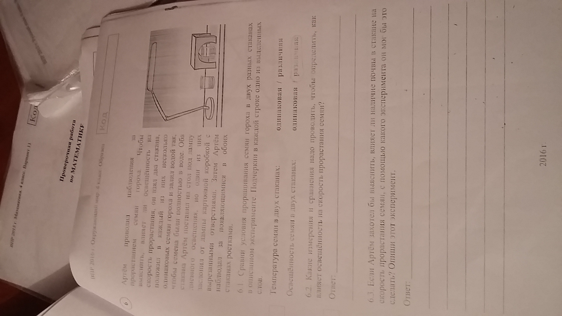 6.1- 1- одинаковая.2различная. 6.2. Нужно измерять ростки и размер семян гороха. 6.3. Впервый стакан насыпать почву ,а во 2 какуюнибуть жидкость. Заранее незашто ))