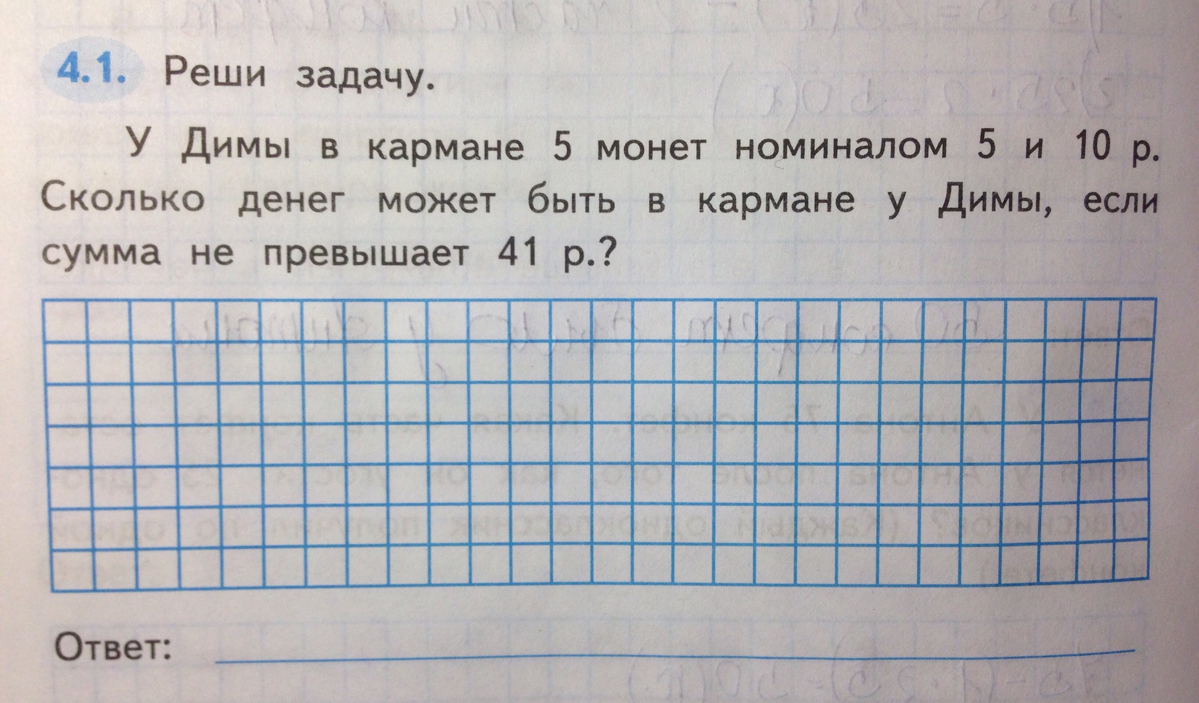 5 монет всего. Сумма не должна привышать 41 рубль.