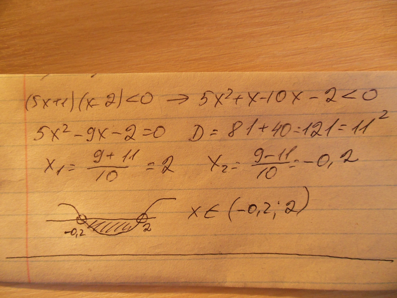 (5х+1)(х-2)<0 Люди помогите решить до конца,ото я фонтанчиком тоже умею интересует решение.МНОГО БАЛЛОВ)