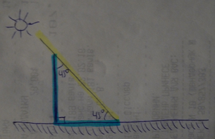 Солнце находится под углом 45° к горизонту (см. рис.)