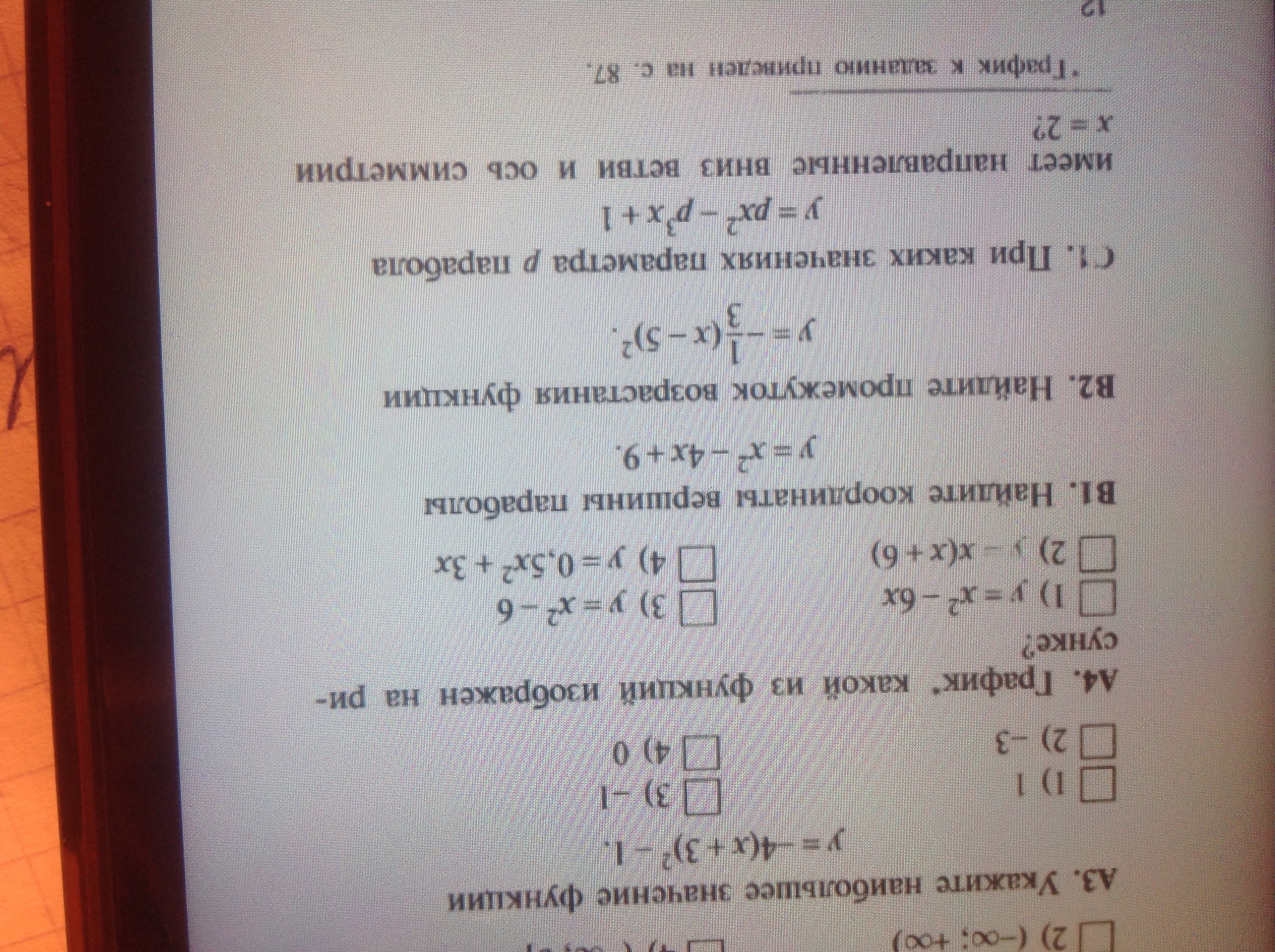 Наибольшее значение у=-1