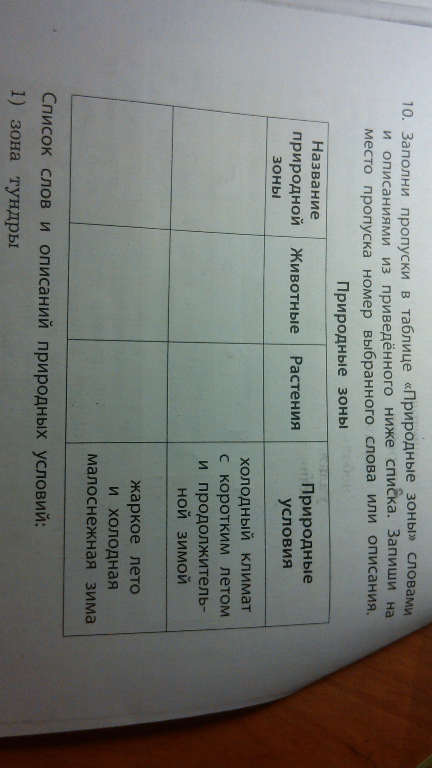 1. Тундра: жив.:Северный олень, Песец, Полярная сова, Пуночка, Белая куропатка; раст.:Кукушкин лён,Ягель (олений мох),Горец живородящий,Вороника (водяника),Голубика и тд.